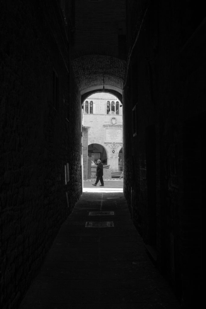 Il primo dicembre a Todi .Uscire di mattina per trovare l’ispirazione e scattare con un 28 mm di epoca analogica momenti in cui le luci si sovrappongono alle ombre .