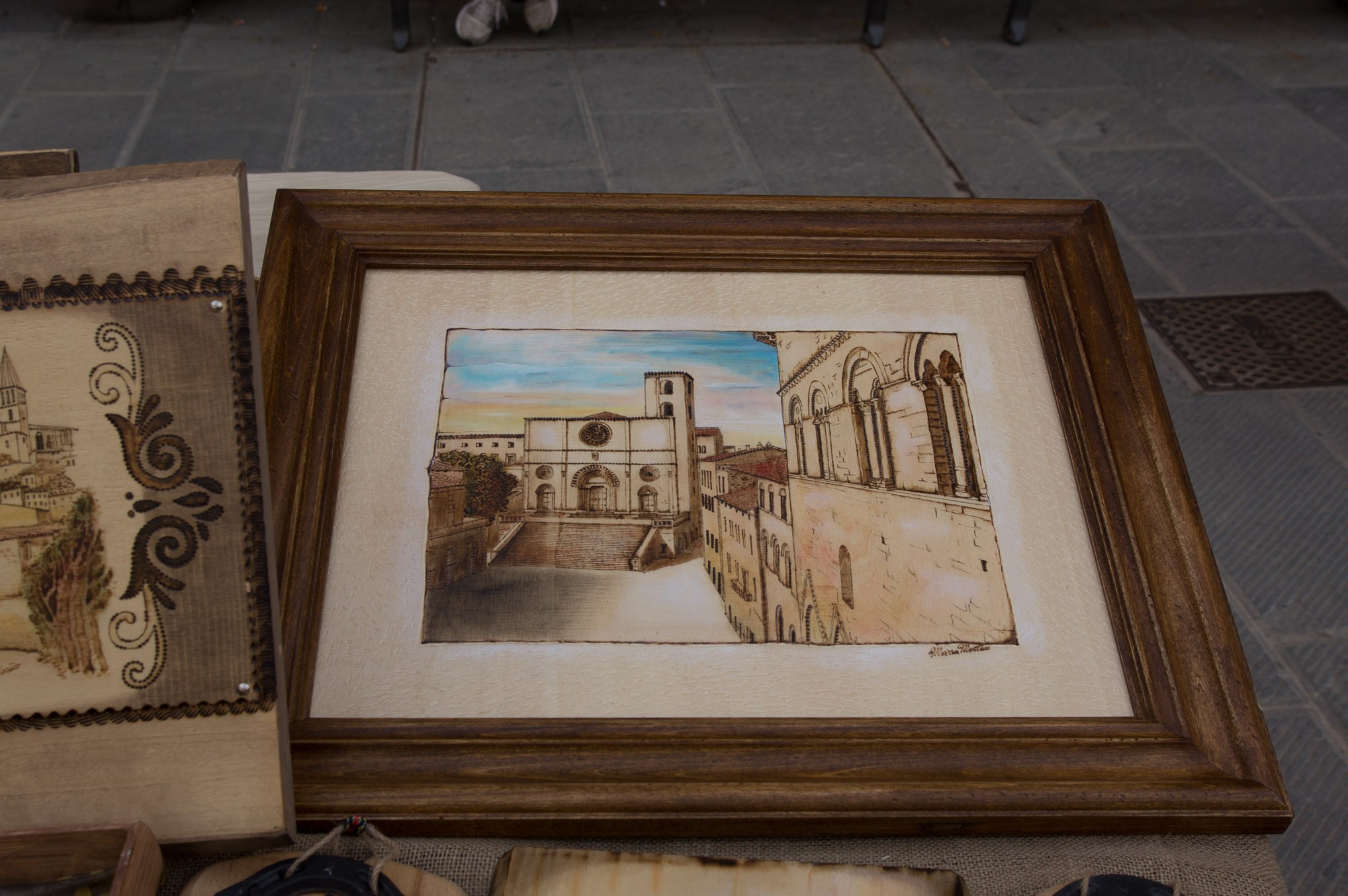 Tra i numerosi banchetti di produzioni artigianali legati al periodo storico medievale una segnalazione va alla nostra amica Maria Mortaro che espone le sue bellissime pirografie ovvero incisioni sul legno con riproduzioni di monumenti e scorci della città di Todi.