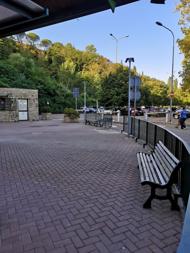 Dal parcheggio vi è un ascensore per giungere al centro .Quando l’ascensore è fuori uso Il servizio sostitutivo è garantito da una navetta bus . Anche il bus elettrico gratuito di busitalia( linea E) arriva al parcheggio di Porta orvietana e lo collega con piazza jacopone al centro.