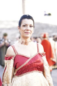 - ; le esibizioni di:tamburini, sbandieratori,giullari, falconieri, danze medievali, combattimenti d’arme a contatto pieno.