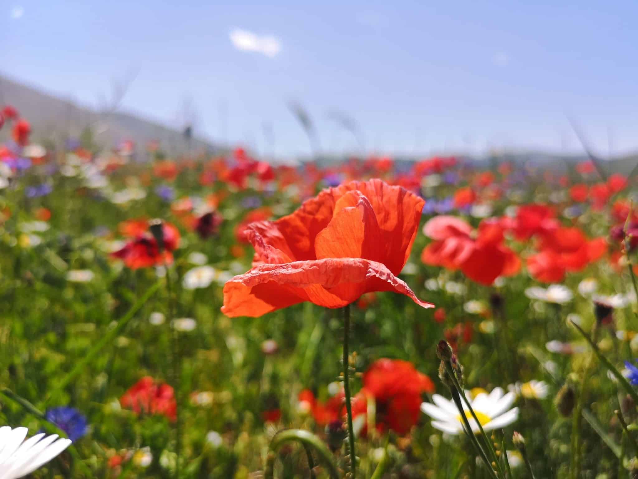 Il Pian Grande si trasforma in un caleidoscopio di colori: il rosso dei papaveri, il blu dei fiordalisi, il giallo delle genziane e il bianco delle margherite si mescolano in un panorama mozzafiato. Questo evento attira non solo turisti ma anche appassionati di fotografia da tutto il mondo, desiderosi di immortalare la bellezza effimera di questo paesaggio.